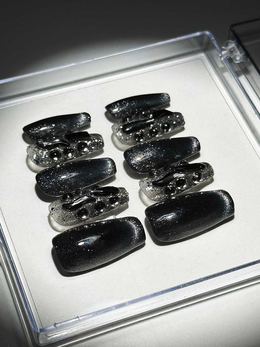 Black Cat Eye Crystal Handmade Press On Nails