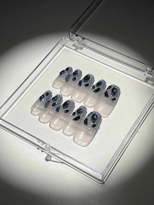 Blue Crystal Glitter Press On Nails