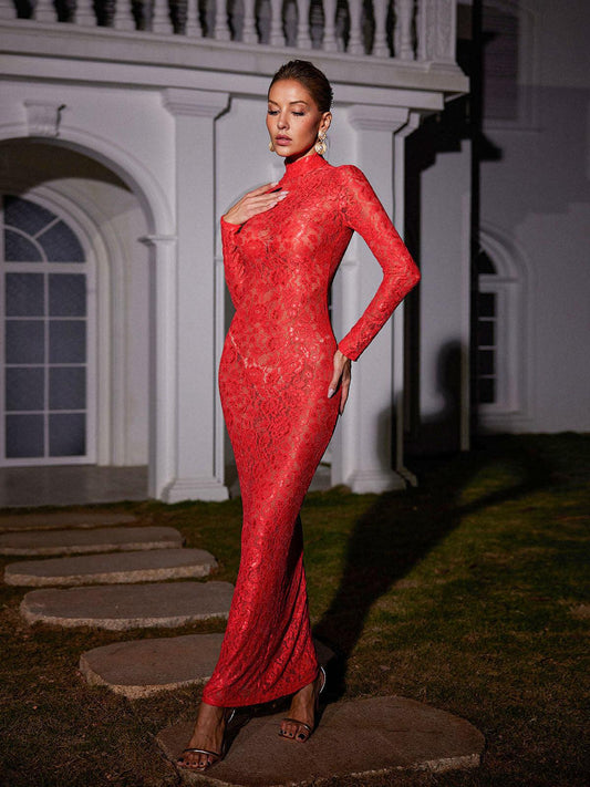 Dante Long Sleeve Embellished Mesh Maxi Dress