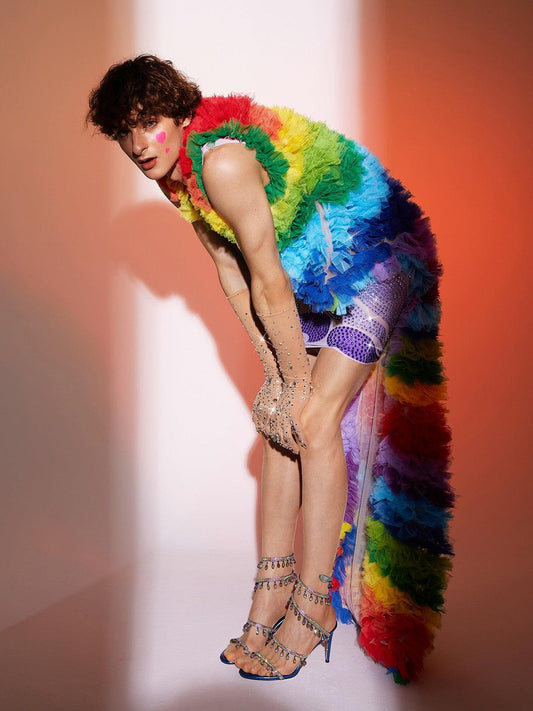 Danny Rainbow Rhinestone Mesh Dress With Vest