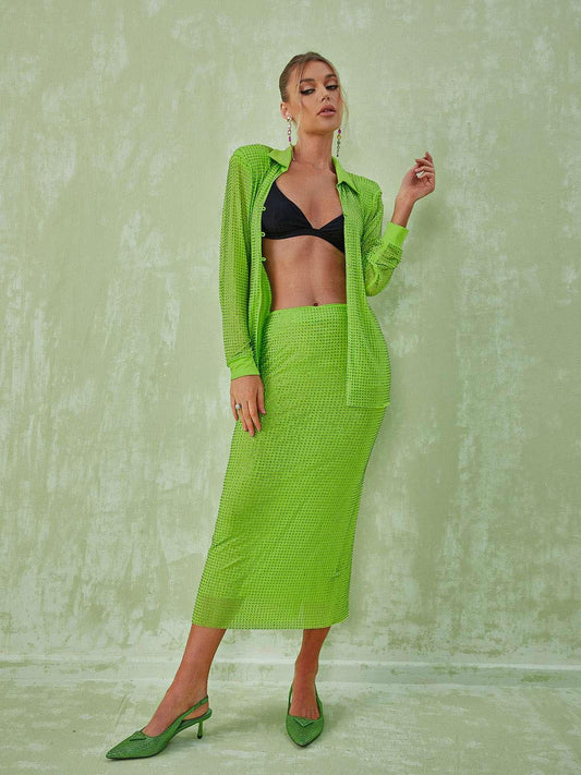Neriah Long Sleeve Crystal Midi Dress In Green