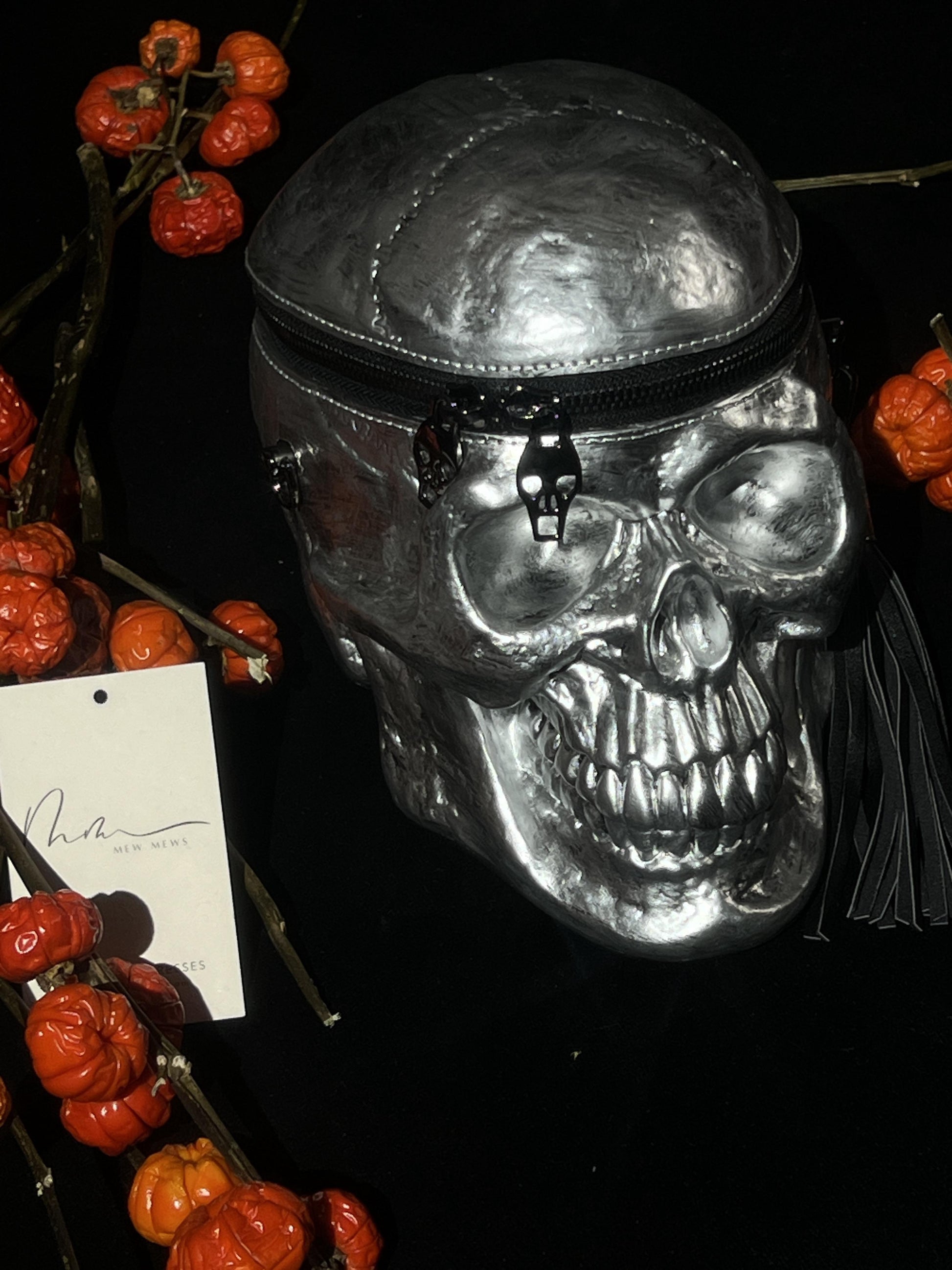 This Alaric Silver Skull Clutch is like something out of a horror movie! Its spooky skull design and feel will give your Halloween party look a boost! Perfectly matching our Halloween collection, this creepy-chic clutch will give your outfit an extra shiver of style!