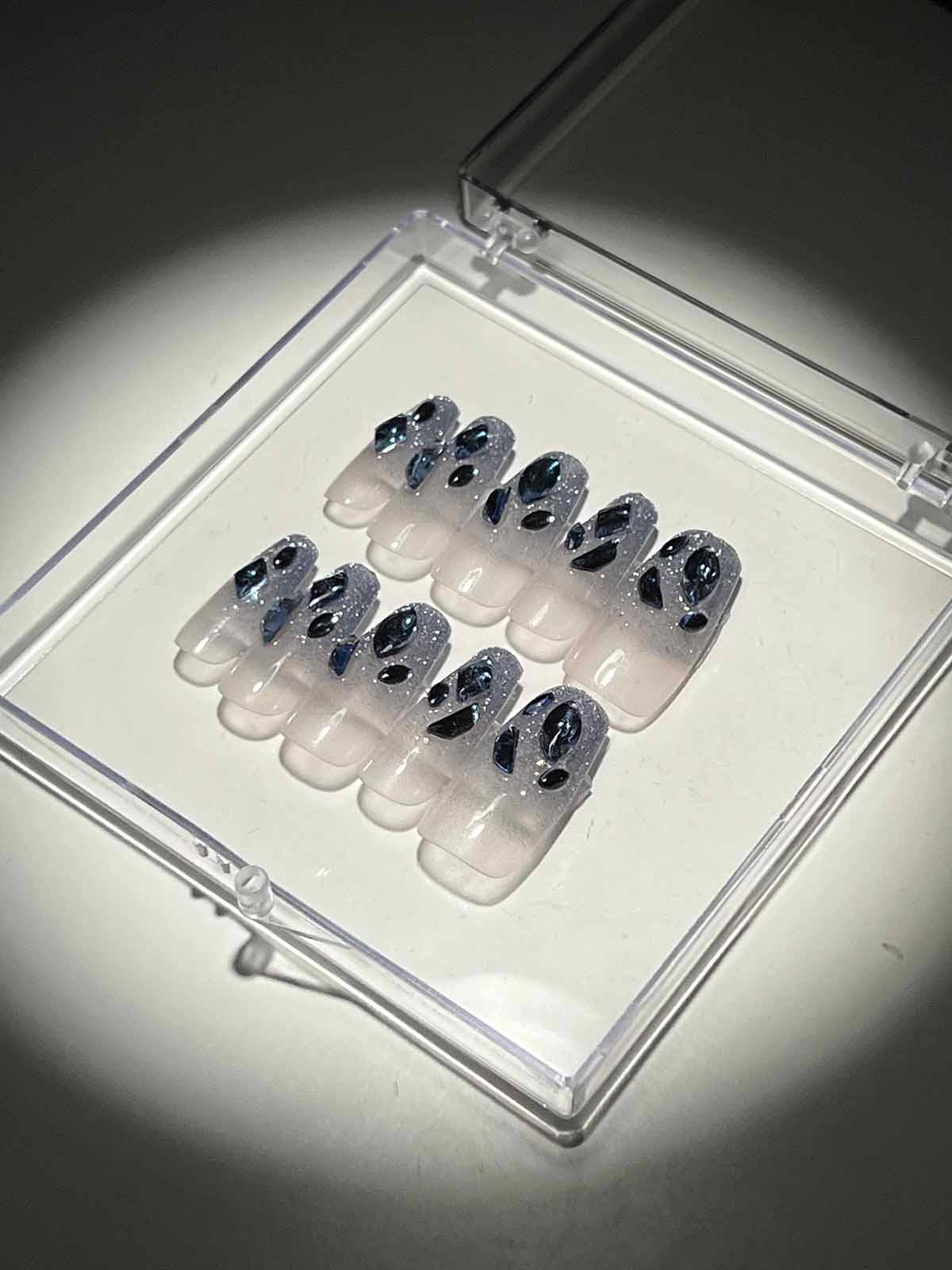 Say hello to your manicure without the hassle with Blue Crystal Glitter Press On Nails! Incorporate some sparkle with their Flash diamond lake blue press-ons that'll give your nails a show-stopping look in a flash. Don't worry about spending hours in a nail salon, get some serious shimmer in minutes!