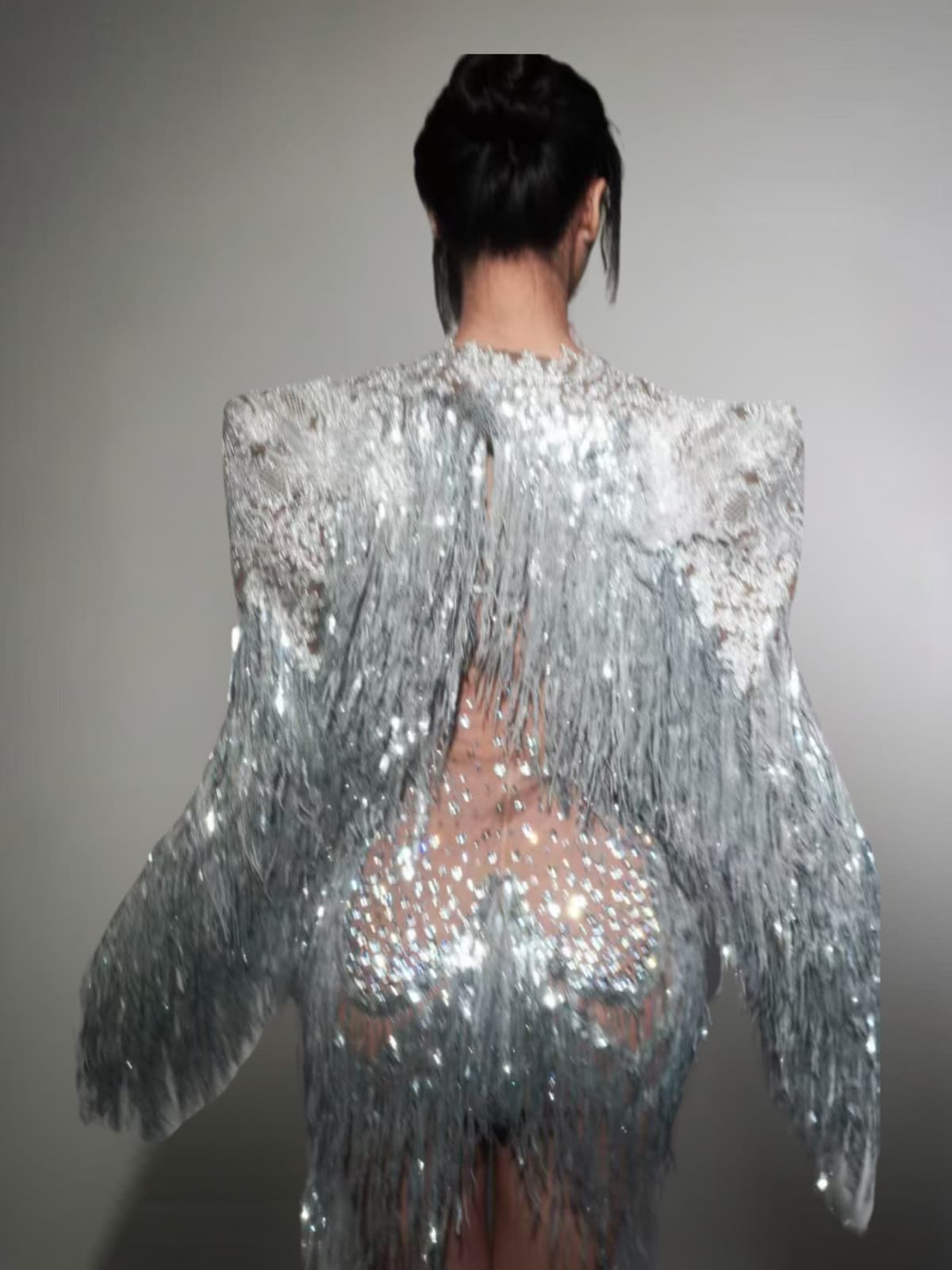Elevate your evening wardrobe with the Cyvra Fringe Mesh Mini Dress With Coat In Silver. This head-turning ensemble combines seductive mesh fabric with dynamic fringe details that catch the light with every movement. The accompanying coat offers versatile styling options, allowing you to reveal or conceal as the occasion demands. Designed for the confident woman who isn't afraid to make an impression, this dress promises to be your go-to statement piece for unforgettable nights out.