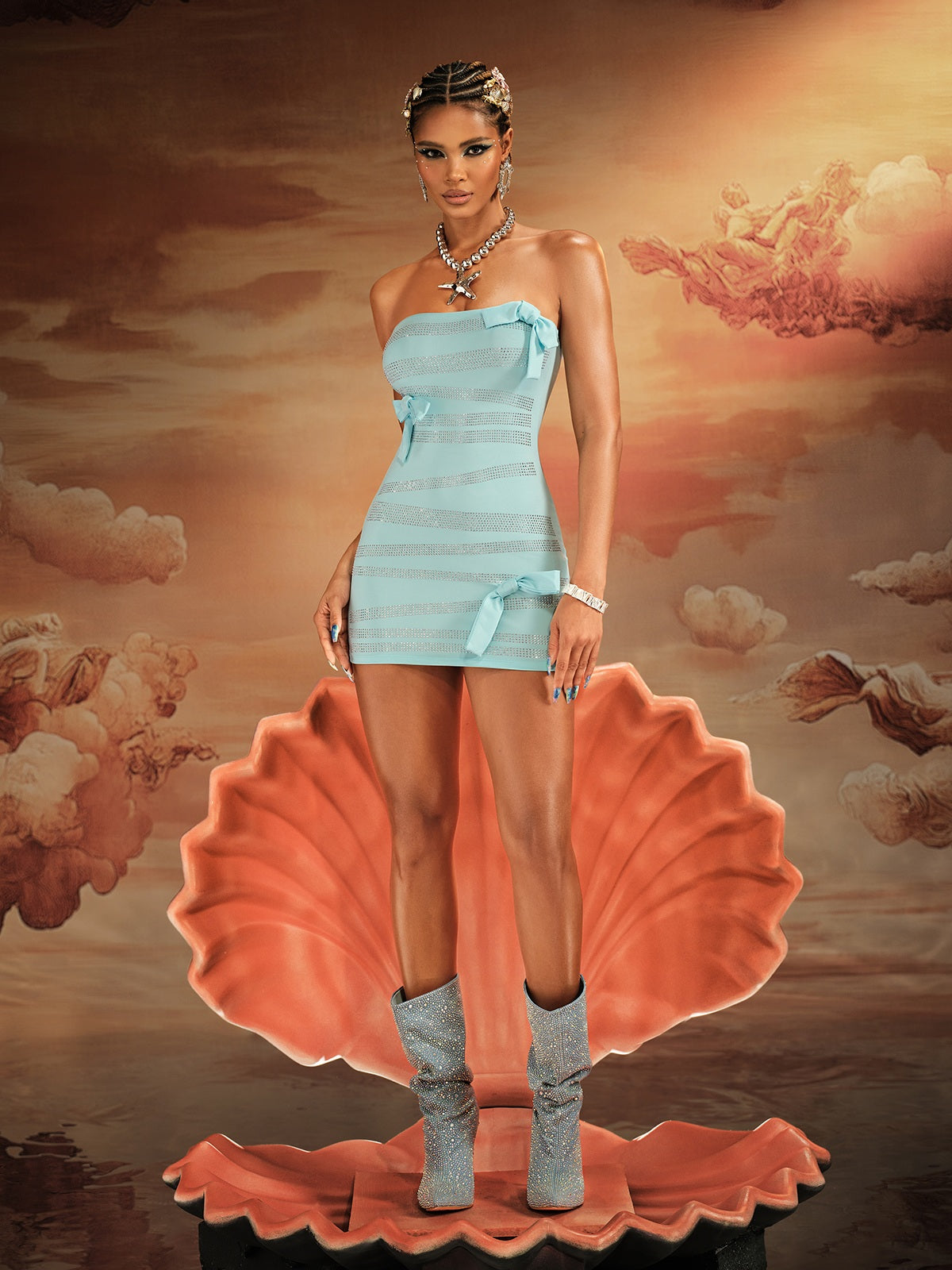 Elevate your style with the Jorunn Strapless Rhinestone Bow Mini Dress. Featuring a dazzling rhinestone bow detail and a flattering strapless silhouette, this dress is perfect for a night out or special occasion. Make a statement and turn heads with this eye-catching and elegant dress.