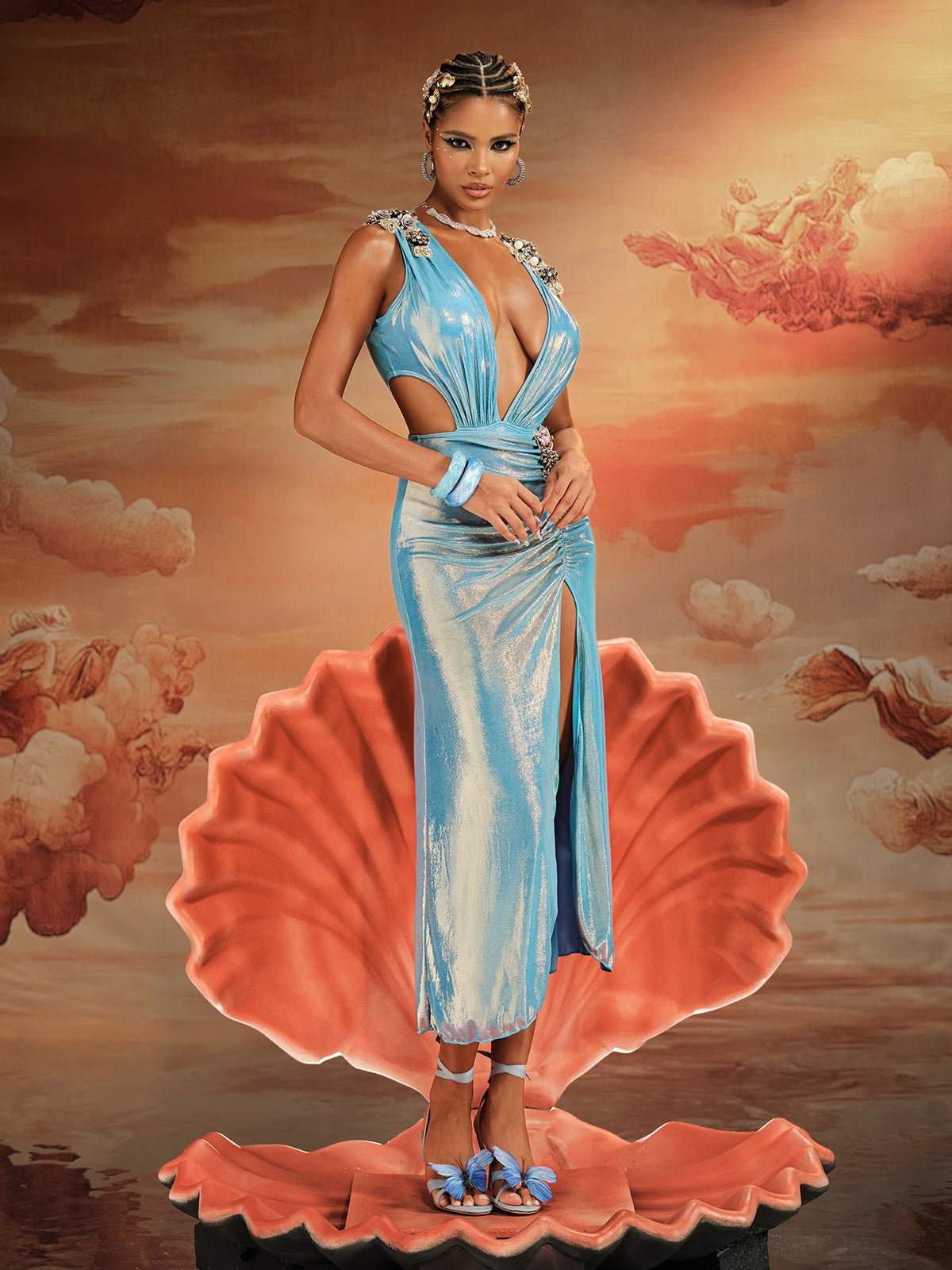 Korbin Cutout Ruched Split Sequin Skirt Set