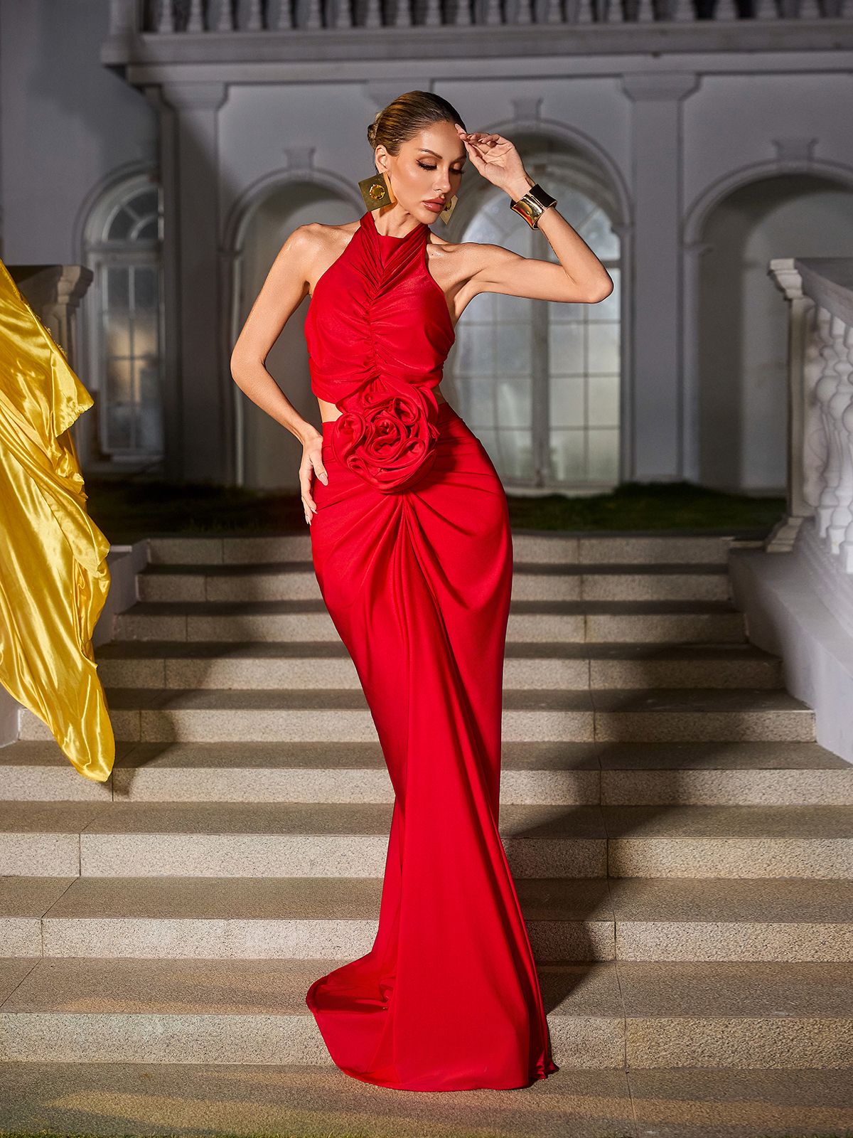 Renwick Sleeveless Flower Ruched Maxi Dress