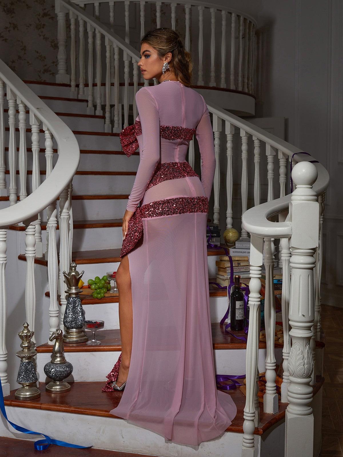 This stunning Zachary Long Sleeve Bow Sequin Dress will make you the belle of the ball! Its intricate sequin detailing and elegant long sleeves will catch the eye, while the flattering bow accent cinches the waist for a perfect fit. Turn heads and make a statement in this beautiful dress.